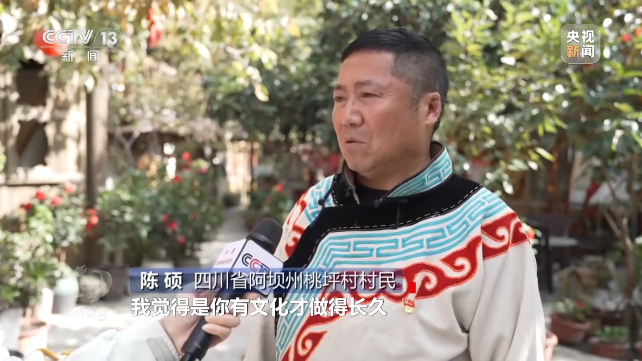 *四川省阿壩州桃坪村村民 陳碩:*餐飲也好,住宿也好,我覺得有文化才做得長久。各個民族有各個民族的文化,只要我們把它保護好,相信以後客人越來越多。