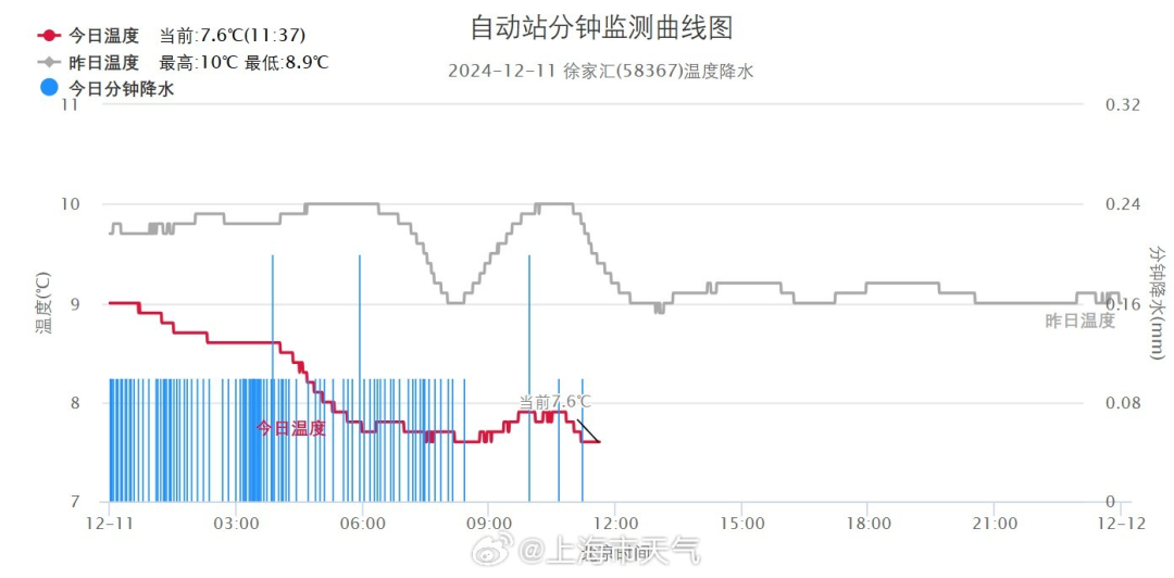 根據最新預報,上海很有可能就此完成入冬進程,如果今明氣温達標,12月8日很可能就是今年上海的入冬日。