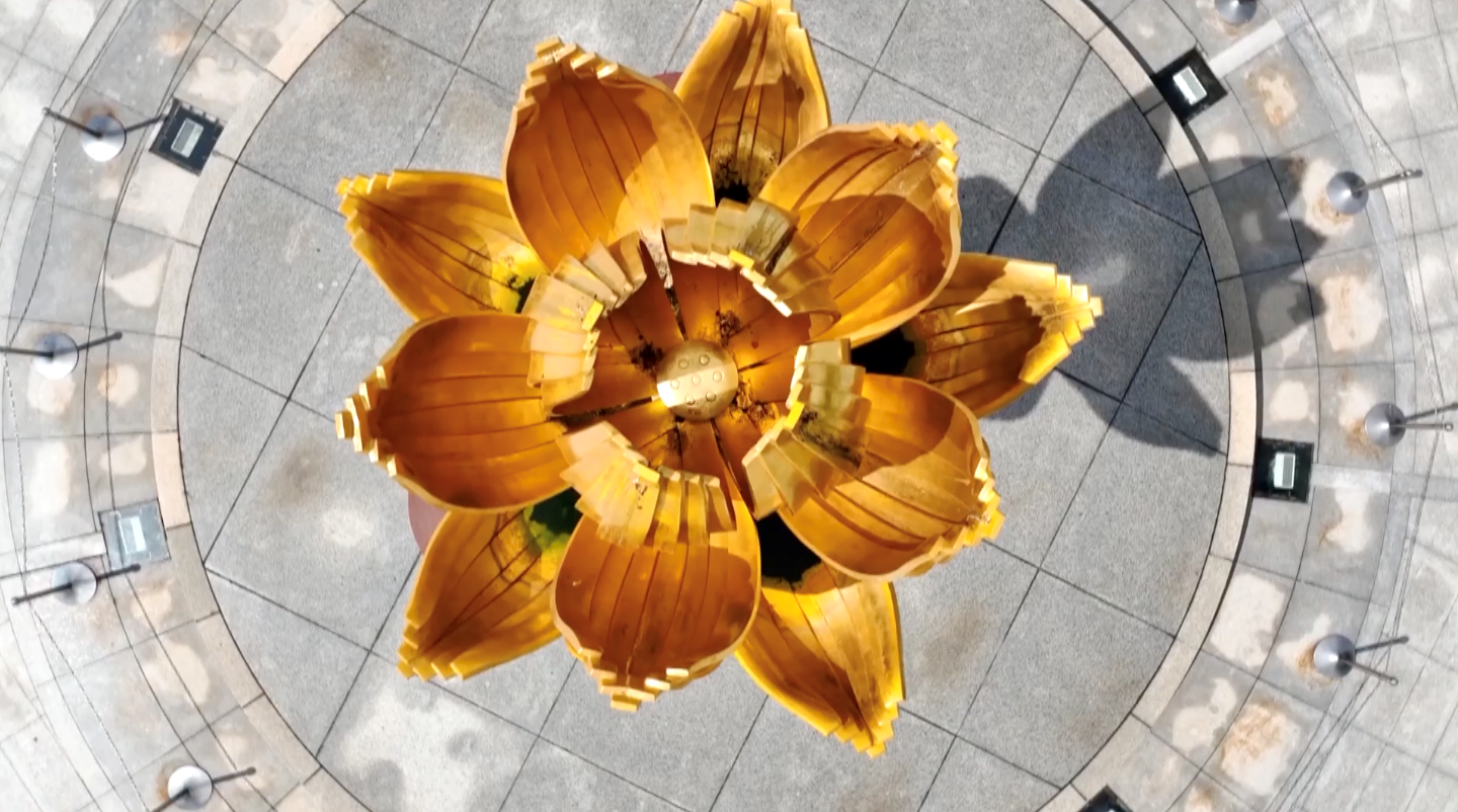 在澳門金蓮花廣場上,一座高6米、重6.5噸的鑄銅貼金雕塑巍然屹立。它名為“盛世蓮花”,是1999年中央人民政府贈送澳門特區最珍貴的禮物。