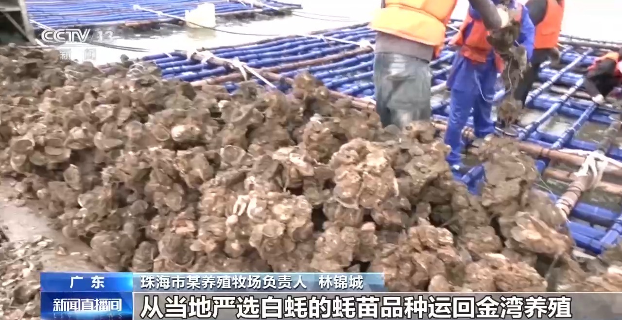 *珠海市某養殖牧場負責人 林錦城:*我們已經跟粵西,比如台山等多個城市達成了合作,從當地嚴選白蠔的蠔苗品種運回金灣養殖。