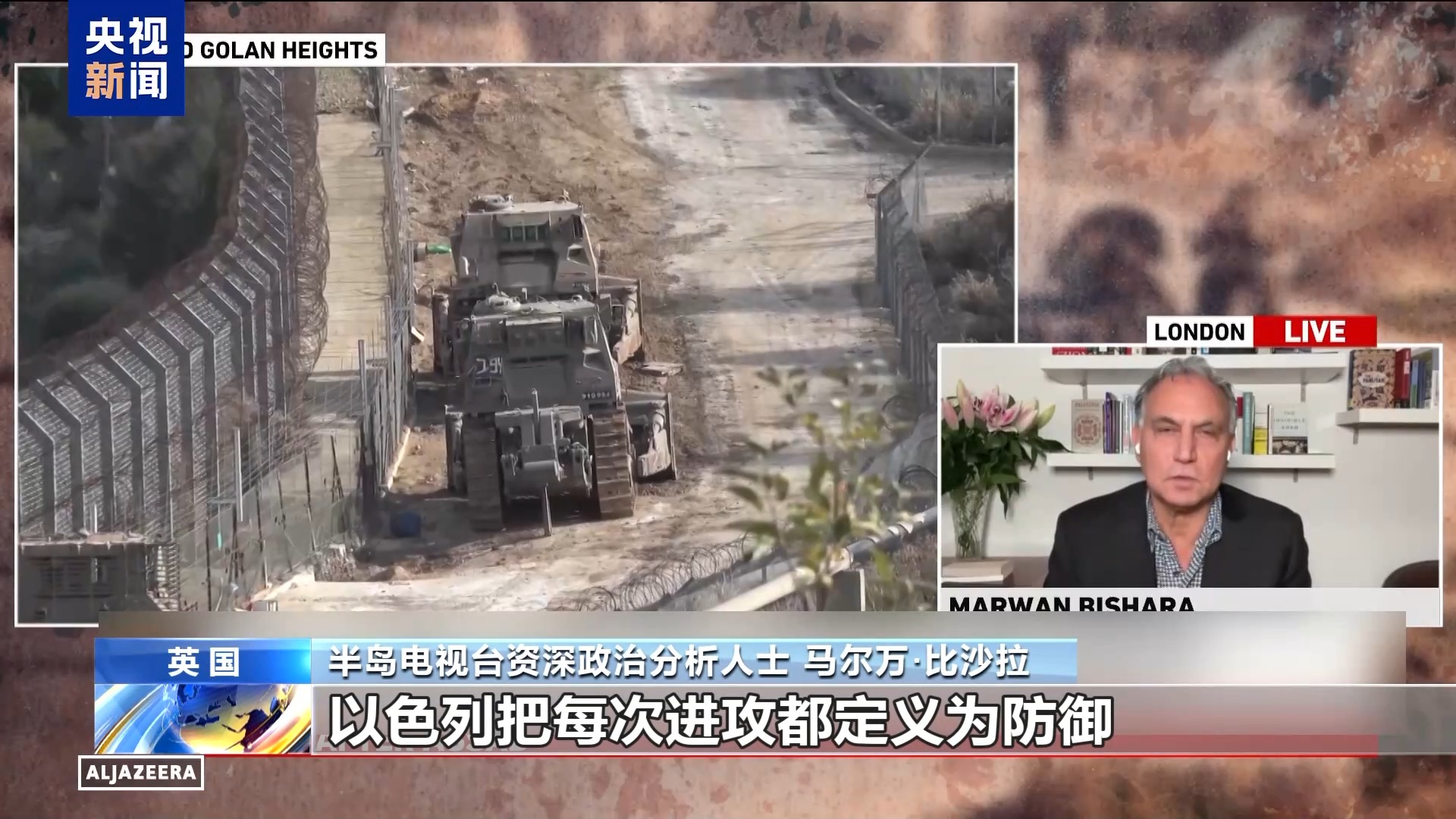 近日,以軍在敍利亞實施了數百次襲擊,擊中敍利亞大部分戰略武器庫。多國強烈譴責以色列的入侵行為違反國際法,破壞敍領土完整。有分析人士指出,以色列是在利用現在的混亂局面,藉機侵佔更多敍利亞土地。