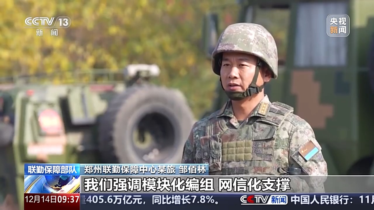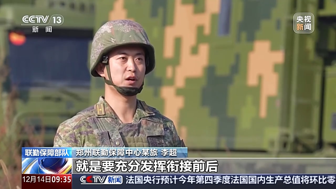 *鄭州聯勤保障中心某旅 李超:*在作戰地區前伸開設應急保障點,就是要充分發揮銜接前後、快速支援作用。為了更好地協調這些末端作戰單元,我們依託指揮系統共享交互信息,從而實現資源的快速調配。