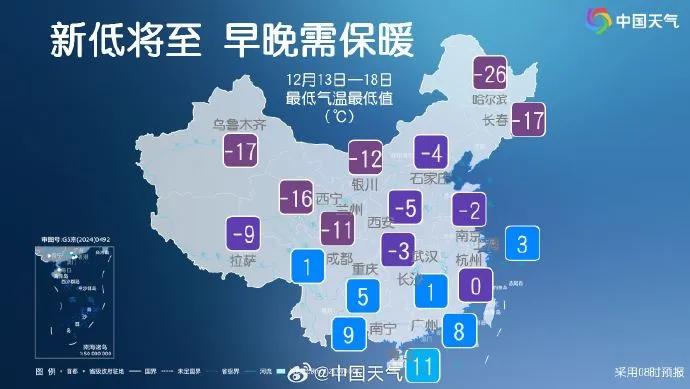 據中國氣象最新消息,但由於晴空輻射降温,導致南方多地今起三天最低氣温還會繼續創新低,最低氣温0℃線將南壓至長江中下游到貴州中北部一帶。
