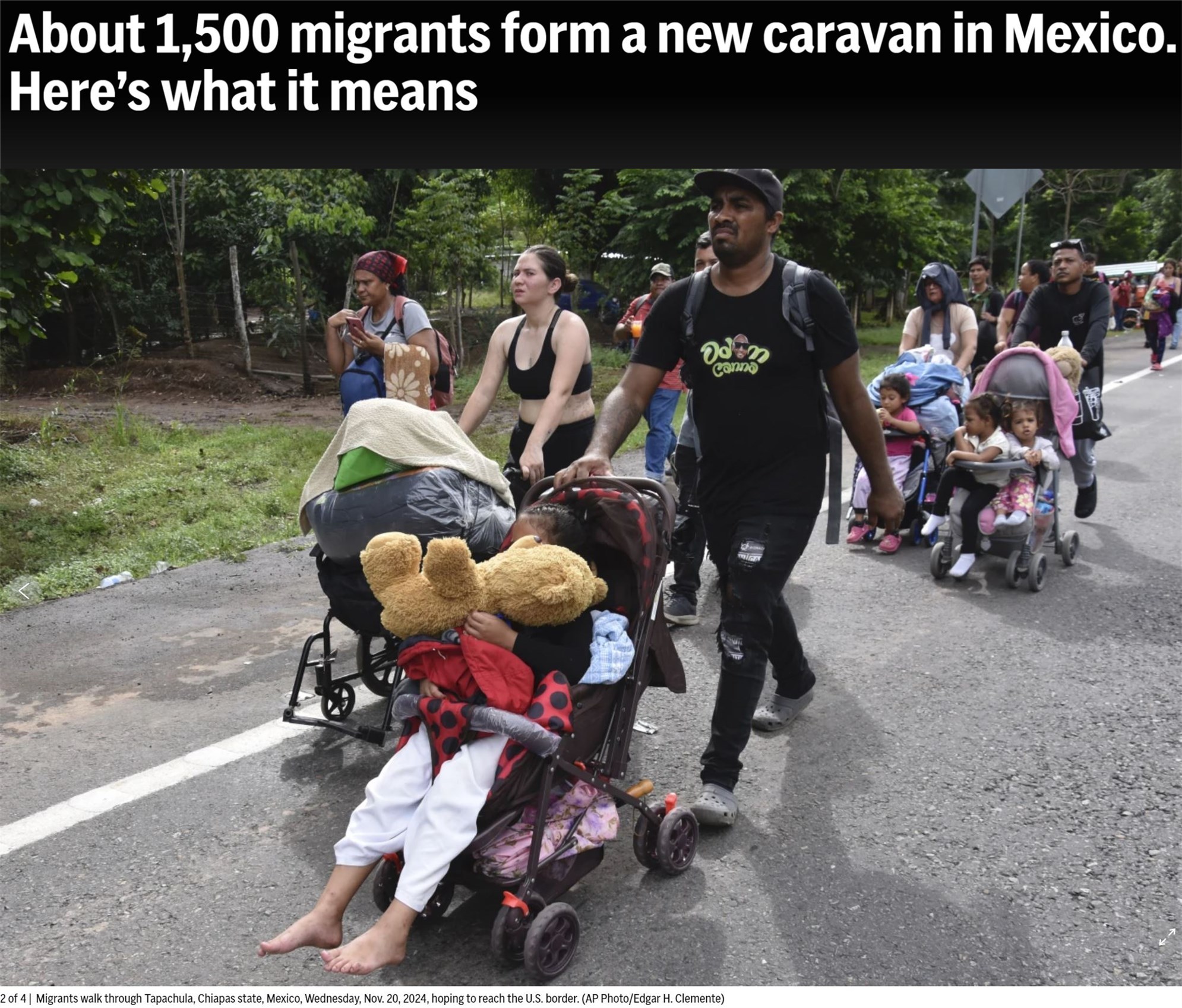 美國移民制度朝令夕改使得非法移民數量在2024年出現激增,中美洲國家赴美非法移民潮規模不斷擴大,他們以搭乘順風車和步行等方式,行進數千公里前往美墨邊境,尋求以各種方式入境美國。當地媒體將這種移民方式稱為“移民大篷車”。