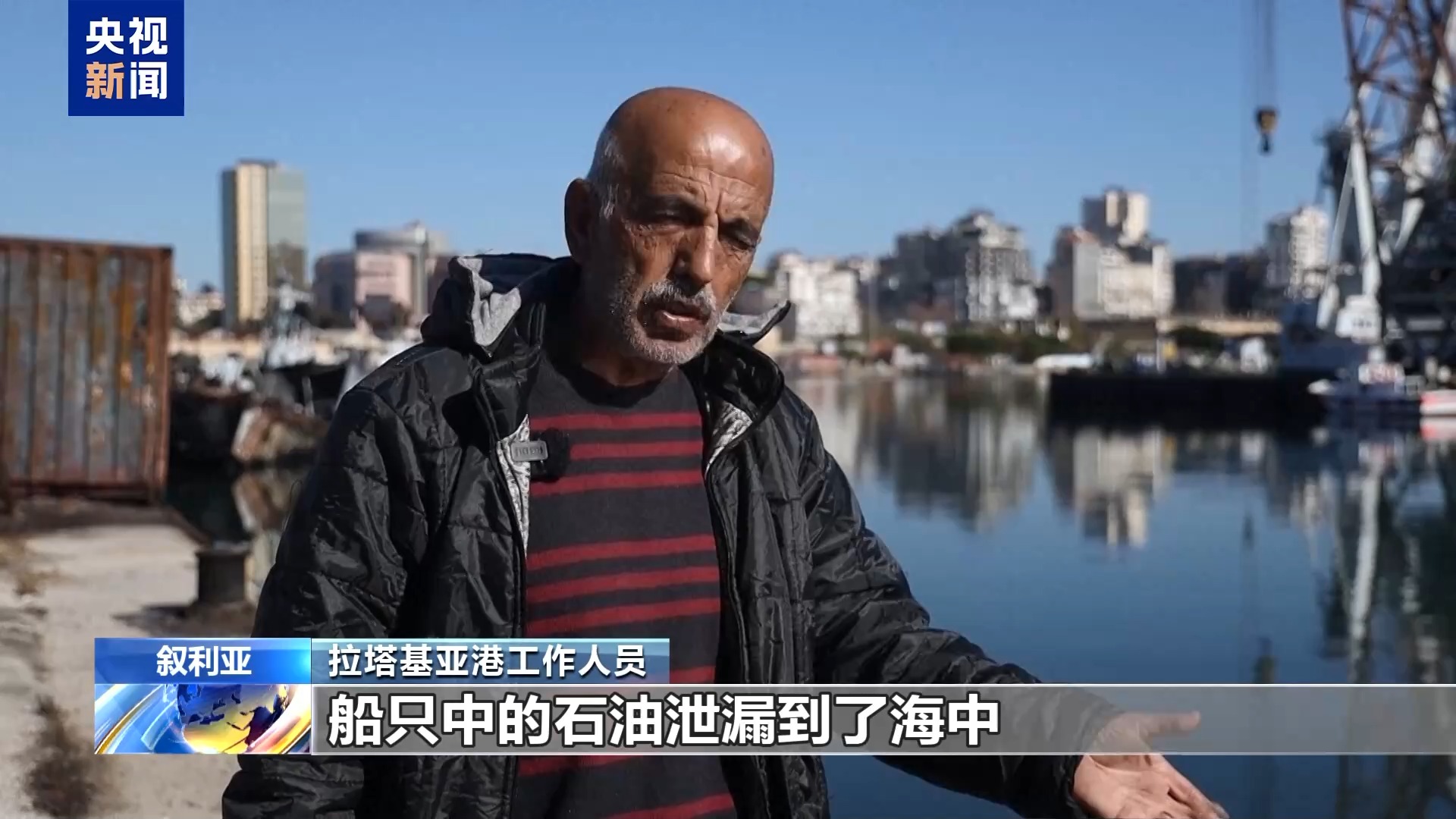 *拉塔基亞港工作人員:*由於船隻遭襲,船隻中的石油泄漏到了海中,這將引發對附近海域和魚羣的污染。