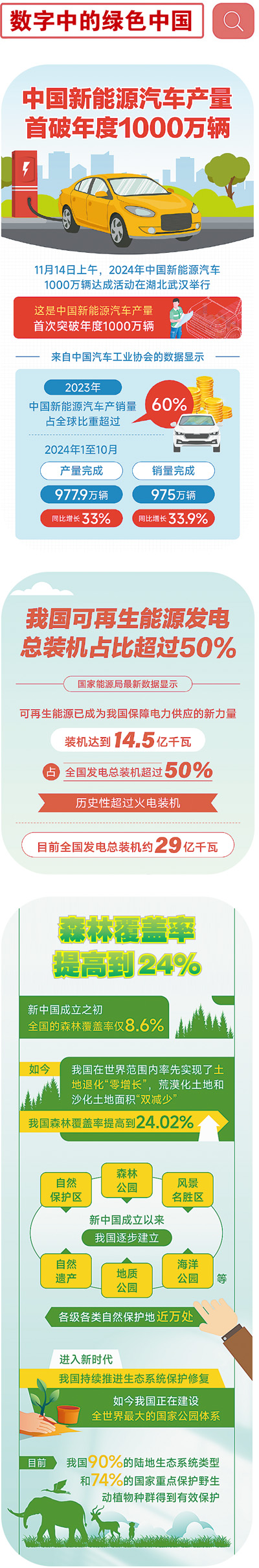 綠色低碳經濟快速發展、製造業綠色化轉型加速、電動汽車銷往全球、生態環境進一步改善、應對氣候變化行動不斷開展、參與全球綠色合作更加積極……從翔實數據到生動案例,從中國經濟到全球合作,中國綠色發展故事在外媒筆下徐徐展開。2024年,中國加快經濟社會發展全面綠色轉型的步伐更加堅定,綠意盎然的中國為全球綠色發展儲蓄更多“綠能”。