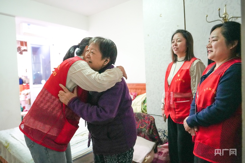 見到熟悉的“紅馬甲”,張麗娟熱情地邀請他們進門,並向記者介紹,“他們無微不至的關懷讓我感到十分幸福,有困難找任何一個‘紅馬甲’都可以解決”。