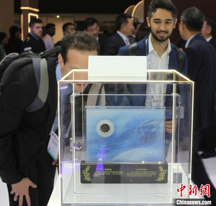 第75屆國際宇航大會期間,一份“天外來物”吸引眾多國際人士駐足欣賞。這是嫦娥六號月球背面樣品首次向全球展出。與會嘉賓圍在展櫃前,或俯身細看,或拍照留念,一睹“月背土”的真容。