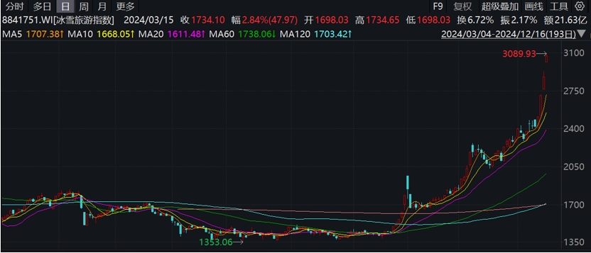 進入12月以來,冰雪經濟概念股正在“火熱”上漲,Wind冰雪旅遊指數週五收漲6.52%,成份股晶雪節能收穫20%漲停板,長白山、大連聖亞等多隻冰雪概念股已經被機構投資者提前佈局。