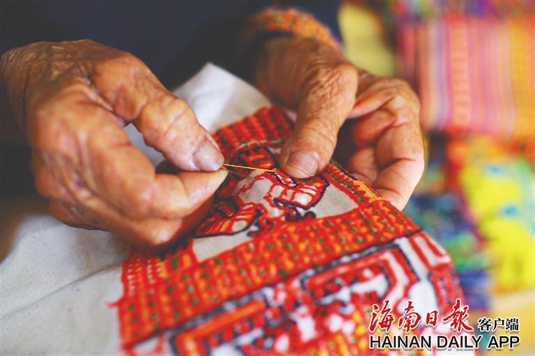 海南黎族婦女刺繡。海南日報全媒體記者 張茂 攝