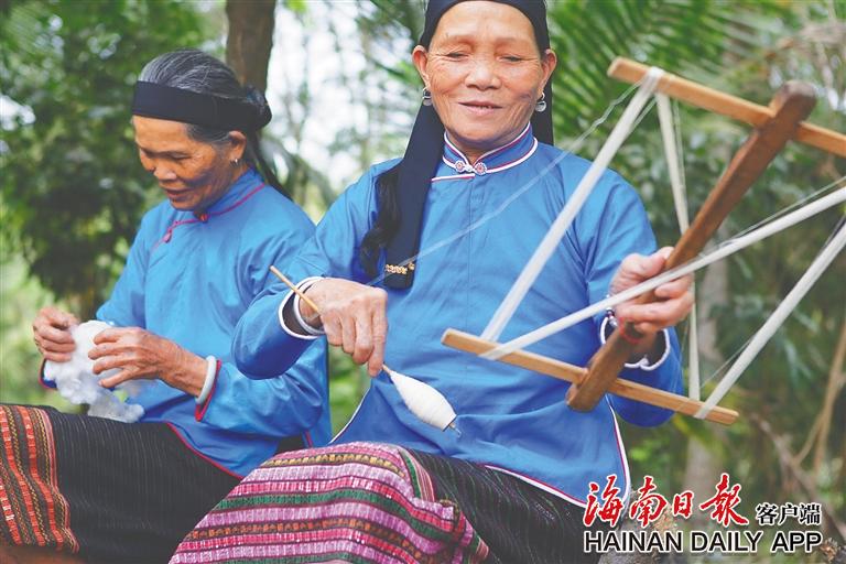 海南黎族婦女紡線。海南日報全媒體記者 張傑 攝