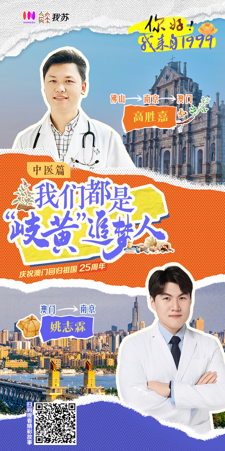 澳門迴歸祖國25週年之際,在江蘇省互聯網信息辦公室、江蘇省人民政府港澳事務辦公室的指導下,江蘇省廣播電視總枱推出雙城雙人系列融媒體報道《你好!我來自1999》,講述澳門青年與內地青年同心同向的奮鬥故事,記錄澳門與內地共榮共進的生動實踐。