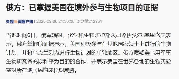 例如2022年3月7日,基裏洛夫公開表示,烏克蘭已經建立了30多個與美國軍方積極合作的生物實驗室。“這些實驗室的夥伴的名單包括五角大樓的國防威脅減少局和沃爾特•裏德陸軍研究所——美國軍方管理的最大生物醫學研究機構。”