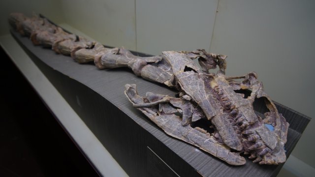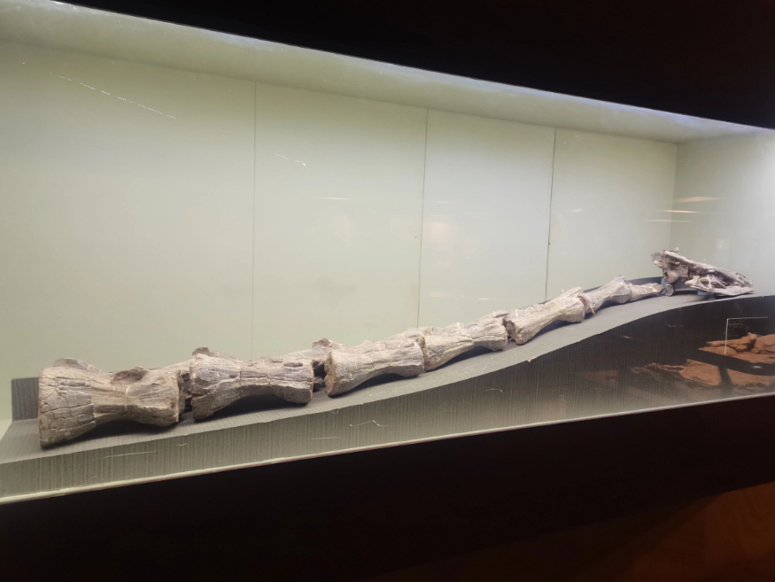 近日,中國科學院古脊椎動物與古人類研究所的尤海魯研究員課題組在雲南祿豐發現早侏羅世蜥腳型類又一新屬種——王氏栗樹龍。目前,該王氏栗樹龍化石已經被工作人員布展在恐龍谷大遺址館內進行展出,每天有不少參觀的遊客。