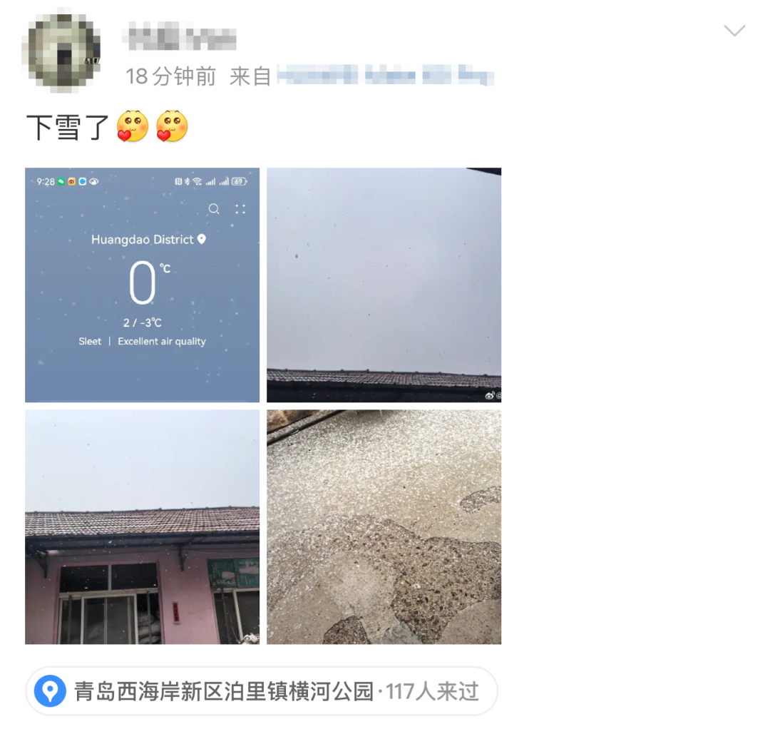 剛剛,青島多地迎來降雪!網友沸騰了:今年冬天第一場大雪!