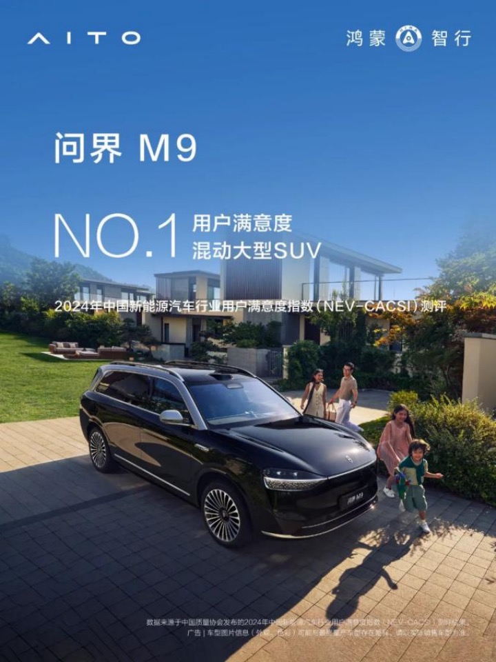 此外,問界還堅持“全心全意為用户服務”,為用户帶來全場景、高滿意度和優質的汽車全生命週期服務體驗。根據2024年中國新能源汽車行業用户滿意度指數(NEV-CACSI)測評結果顯示,問界M9獲得混動大型SUV用户滿意度第一名,問界M7獲得混動中大型SUV用户滿意度第一名,問界M5獲得純電動中型SUV感知質量第一名。