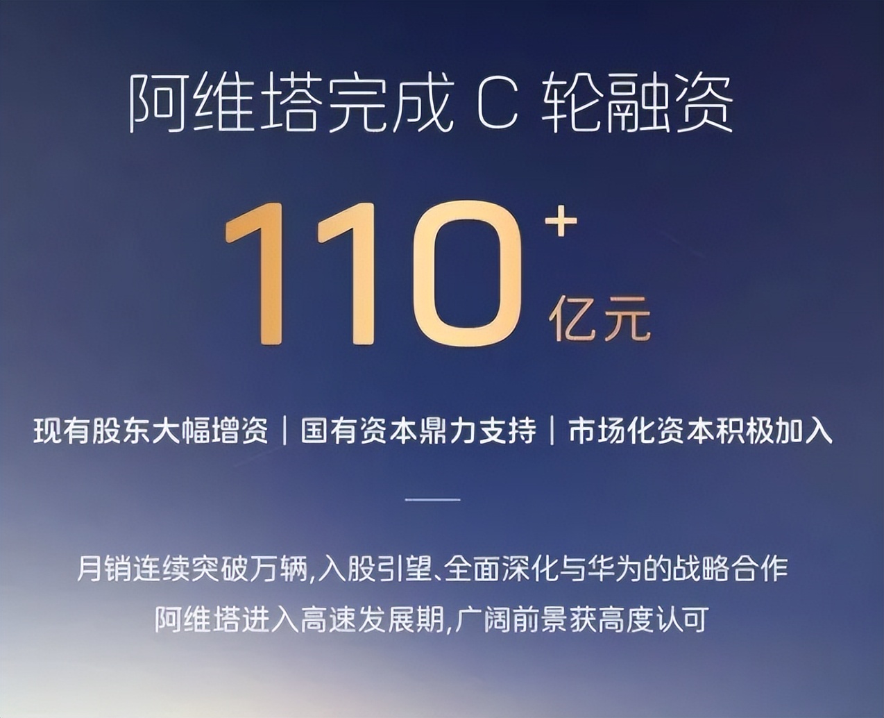 阿維塔完成111億元C輪融資,長安汽車等13家投資方參與