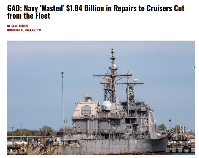 花錢打水漂?美媒:美海軍為升級4艘巡洋艦花費18.4億美元,卻在完成升級前將其提前退役