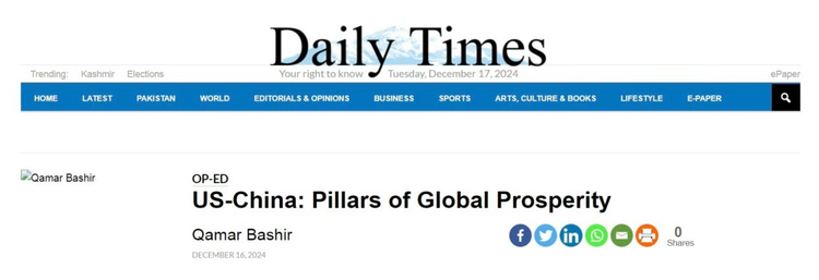 國際在線專稿:2024年12月13日,中美兩國政府代表在北京換文簽署議定書,將《中美科技合作協定》延期5年。這一“要合作不要對抗”的舉措符合兩國人民利益,也順應國際社會期待。巴基斯坦《每日時報》網站16日刊發題為《中美:全球繁榮的支柱》的評論文章,文章作者、巴基斯坦前總統新聞秘書卡馬爾·巴希爾認為,中美合作勢不可擋,不僅將推動兩國的科技進步和經濟社會發展,更有利於促進雙方應對全球共同挑戰,增進世界人民福祉。