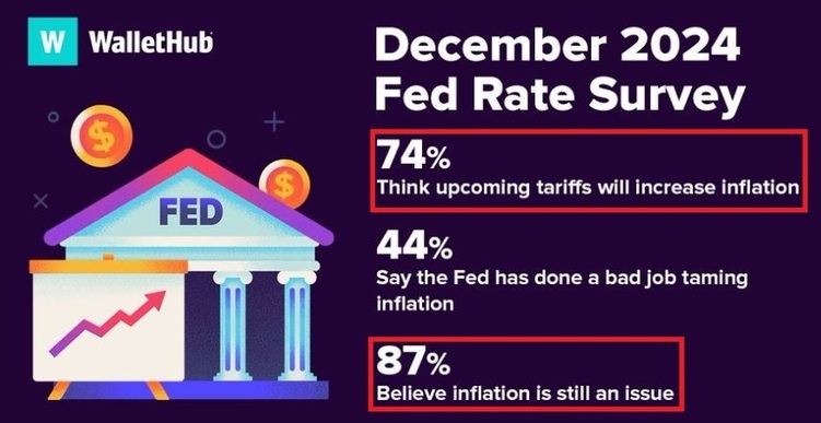 近四分之三(74%)的受訪者表示,在美國通脹率仍高於美聯儲所設2%目標的情況下,他們擔心這位當選總統上任後可能加徵的關税會進一步推高通脹。