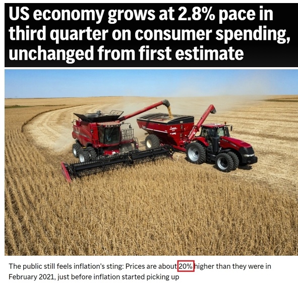 根據上月底公佈的第二份報告,美國三季度經濟年化增速為2.8%,較二季度的3%有所放緩。儘管如此,報告仍稱“美國經濟表現出驚人的韌性”,理由是在過去9個季度中,有8個季度的經濟增速超過2%。