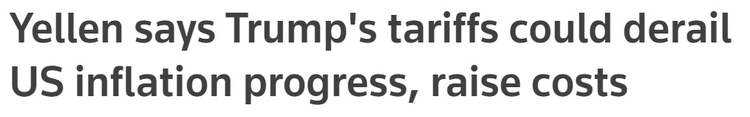 美國財政部長耶倫日前也警告,特朗普對進口商品廣泛徵收高關税的計劃將增加美國家庭和企業成本,破壞抑制通脹的進展,對美國經濟增長產生不利影響。
