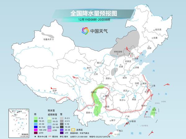 明天,雨雪稀少的格局還將持續,新疆北部、西藏東南部、川西高原東部、雲貴高原、內蒙古中部、河北北部、吉林東部、遼寧東部、山東半島北部等地部分地區有小雪或雨夾雪,其中,新疆塔城和伊犁河谷部分地區有中到大雪。四川盆地南部、貴州北部、雲南西南部、台灣島等地部分地區有小雨。