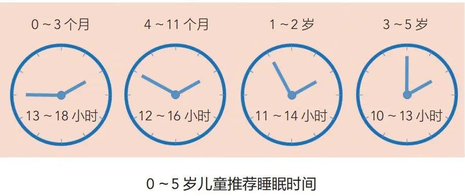 (1)學齡前兒童:《0歲~5歲兒童睡眠衞生指南》(WST579—2017)推薦0~5歲兒童每天總睡眠時間具體如下圖。