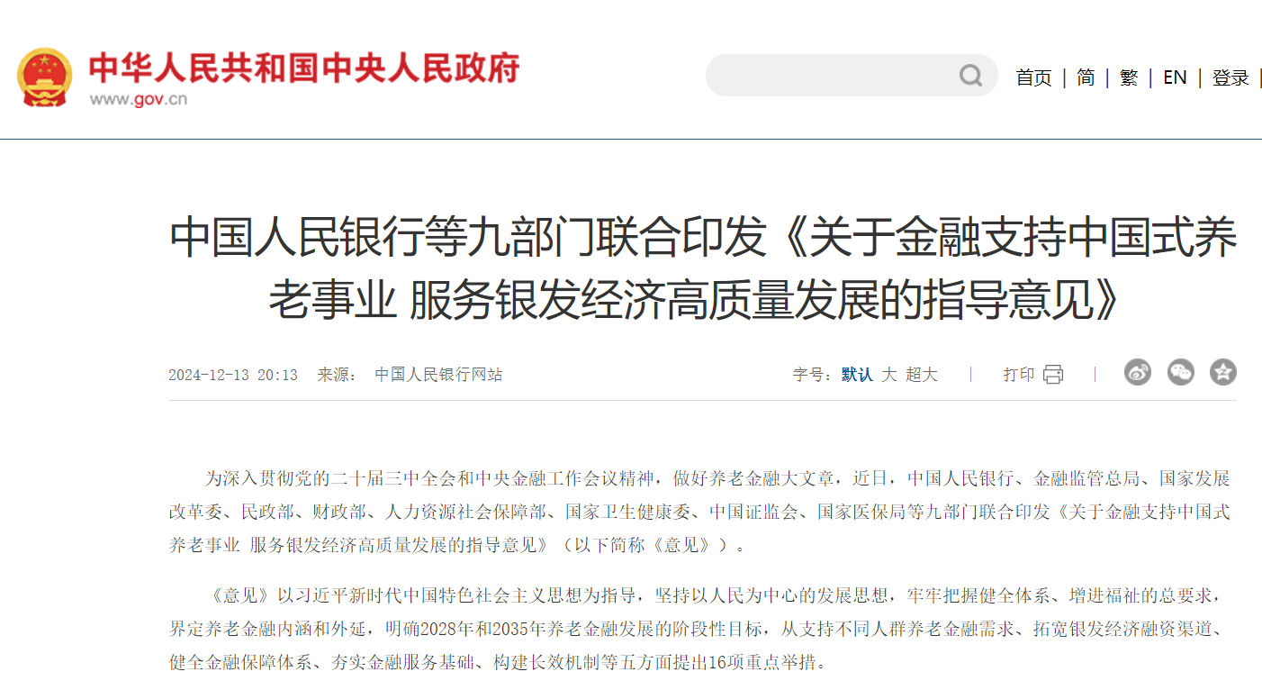 【環球網保險綜合報道】推進中國式養老事業、發展銀髮經濟,事關國家發展全局和億萬人民福祉。近日,中國人民銀行等九部門聯合印發《關於金融支持中國式養老事業 服務銀髮經濟高質量發展的指導意見》(以下簡稱《指導意見》),從支持不同人羣養老金融需求、拓寬銀髮經濟融資渠道、健全金融保障體系、夯實金融服務基礎、構建長效機制等五方面提出16項重點舉措。