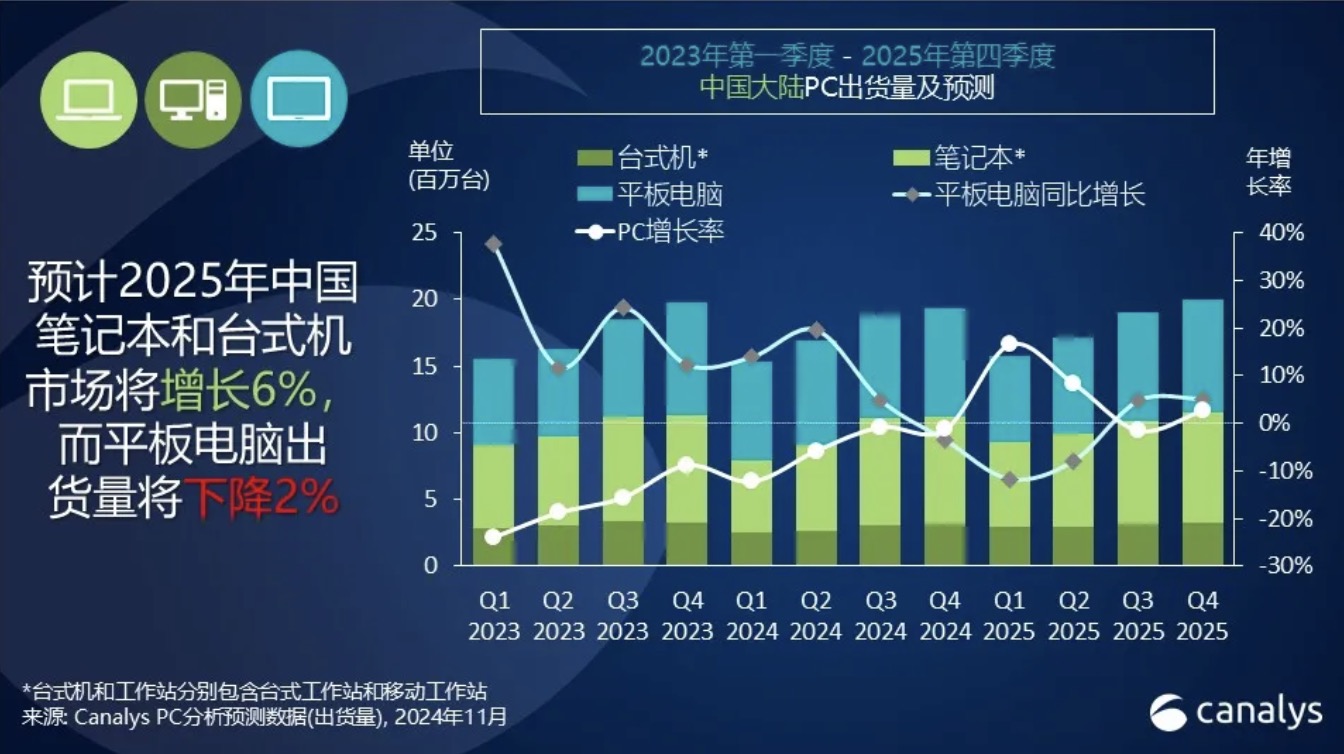 機構預測:中國大陸PC市場2025年有望繼續復甦