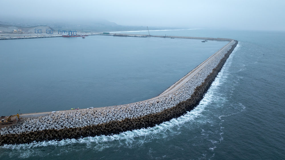 錢凱港位於秘魯首都利馬以北80公里的錢凱灣內,是中秘共建“一帶一路”重點項目。港口服務範圍覆蓋農產品、工業原料、機械設備等多個領域。從空中俯瞰,約2.6公里長的防波堤像巨臂一般環抱住碼頭設施,以阻擋太平洋海浪的侵蝕。