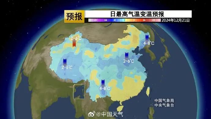 12月20日,據中國天氣消息,*今天,內蒙古到陝西北部等地的最高氣温將下降4~8℃。明天冬至,冷空氣繼續向南推進,長江及其以北大部氣温降温2~6℃。*後天,長江及其以南大部出現2~6℃降温,南方也將逐漸轉為偏低。