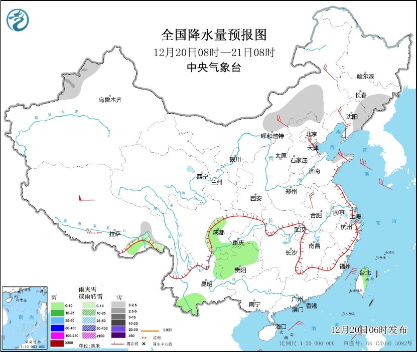 此外,未來三天,全國大部地區仍降水稀少,僅在新疆北部、西南地區東部等地有弱降水。其中今天,新疆西北部、西藏東部、內蒙古中部、河北北部、吉林東部、遼寧東部等地部分地區有小到中雪或雨夾雪。四川盆地西部和南部、貴州西部和北部、雲南東北部和南部、台灣島北部等地部分地區有小雨。