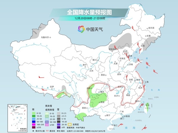 今明天(12月20日至21日),*較強冷空氣將繼續影響我國,內蒙古中部、河北西北部、東北地區東部等地部分地區氣温下降6至8℃。降温過後,我國多地氣温較常年同期偏低,同時也將創今年下半年來新低。*冷空氣的到來未能改變我國大部雨雪稀少的格局,但22日起,長江中下游等地將有一次弱降水過程。