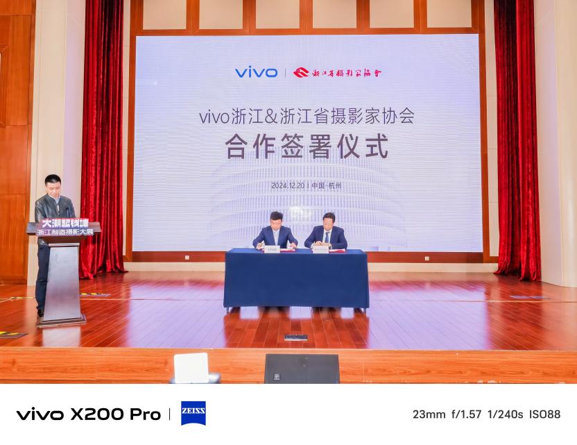 12月20日,vivo浙江與浙江省攝影家協會於浙江展覽館圓滿舉辦了戰略合作簽約儀式。此次簽約,不僅推動了移動影像技術與專業攝影實踐的深度合作,更是一次科技力量與人文精神的融合探索,旨在共同探索移動影像新未來。