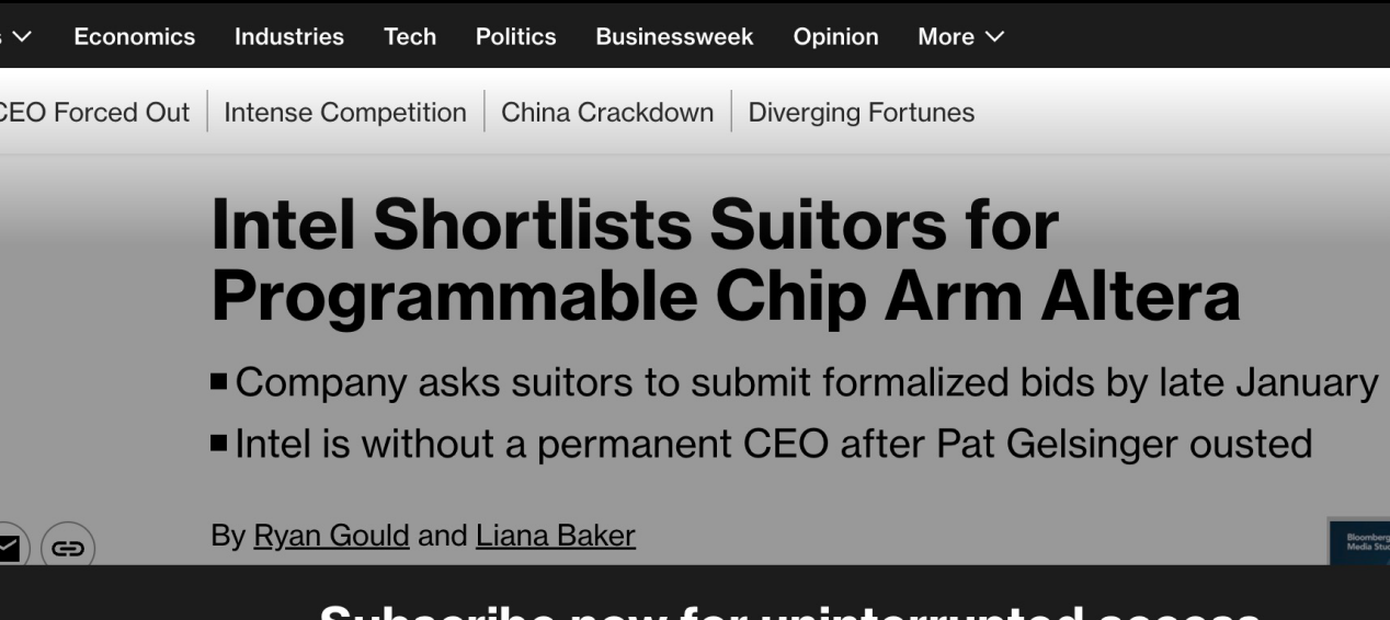 據瞭解,在 11 月美國感恩節假期前發出初步報價後,英特爾收到了多種交易結構選擇,從收購 20%至 30%的股份到完全控制 Altera。知情人士稱,一些交易方在其提案中概述了多種路徑,對該部門的估值從 90 億美元到 120 億美元不等。