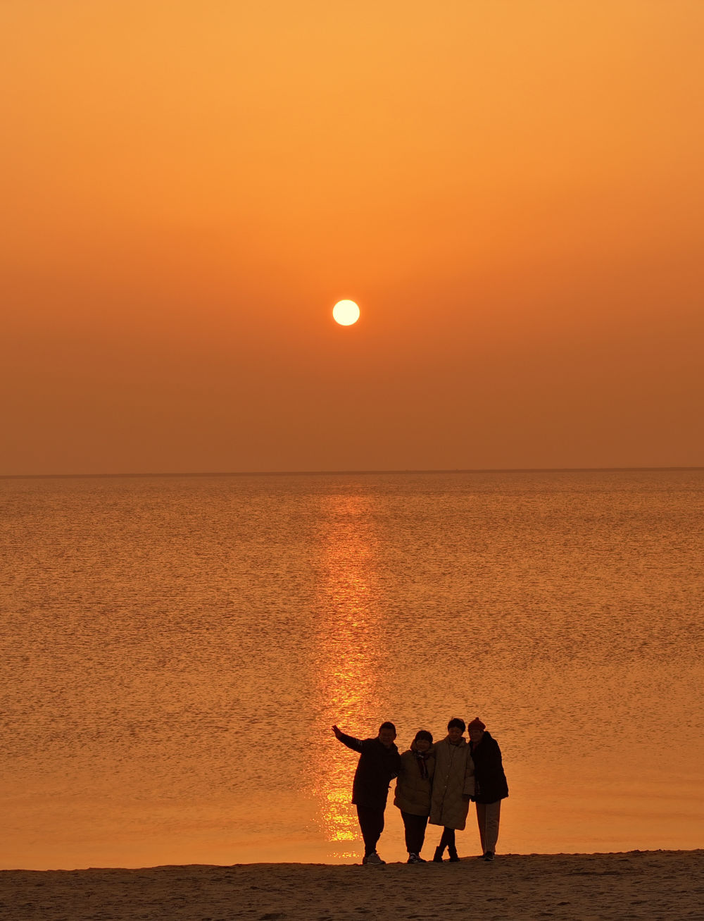 ↑1月1日,遊客在江蘇省啓東市圓陀角碧海銀沙觀賞日出(無人機照片)。 新華社發(許叢軍 攝)