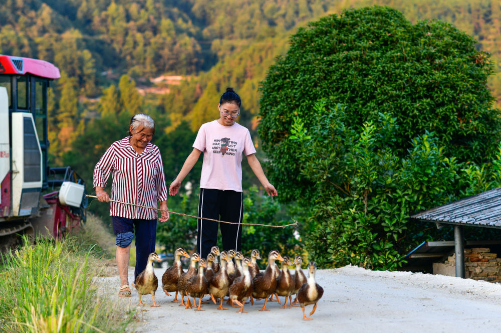 ↑9月25日,在貴州省岑鞏縣注溪鎮周坪村,28歲的駐村幹部侯佳媛(右)在與村民交流。新華社記者 楊文斌 攝