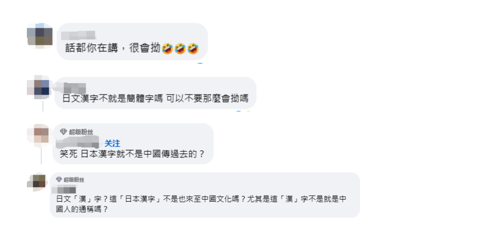 也有網友質疑,“日文漢字不就是簡體字嗎?可以不要那麼會拗嗎?”“笑死,日本漢字就不是中國傳過去的?”“日文漢字?這日本漢字不是也來自中國文化嗎?尤其是這‘漢’字不就是中國人的通稱嗎?”