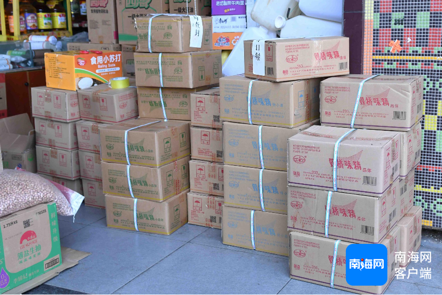 在對上述涉嫌違法商家依法予以查處後,海口市市場監督管理局瓊山分局根據線索分析研判,結合廠家工作人員的市場走訪情況,順藤摸瓜,對鳳翔蔬菜批發市場內的海口瓊山禮賓商行進行突擊檢查。記者看到,該商行相較先前檢查的商行規模較大,主要銷售調味品、乾貨、茶葉、副食品等。在該商行貨架上,同樣擺放有十餘包“雙橋”味精產品。