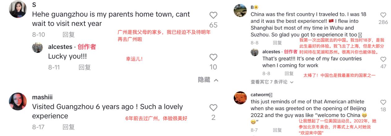 在這些 TikTok 視頻中,除了對中國景、物的讚歎外,還有一個高頻出現的主題 —— 中國人民的友善和熱情。