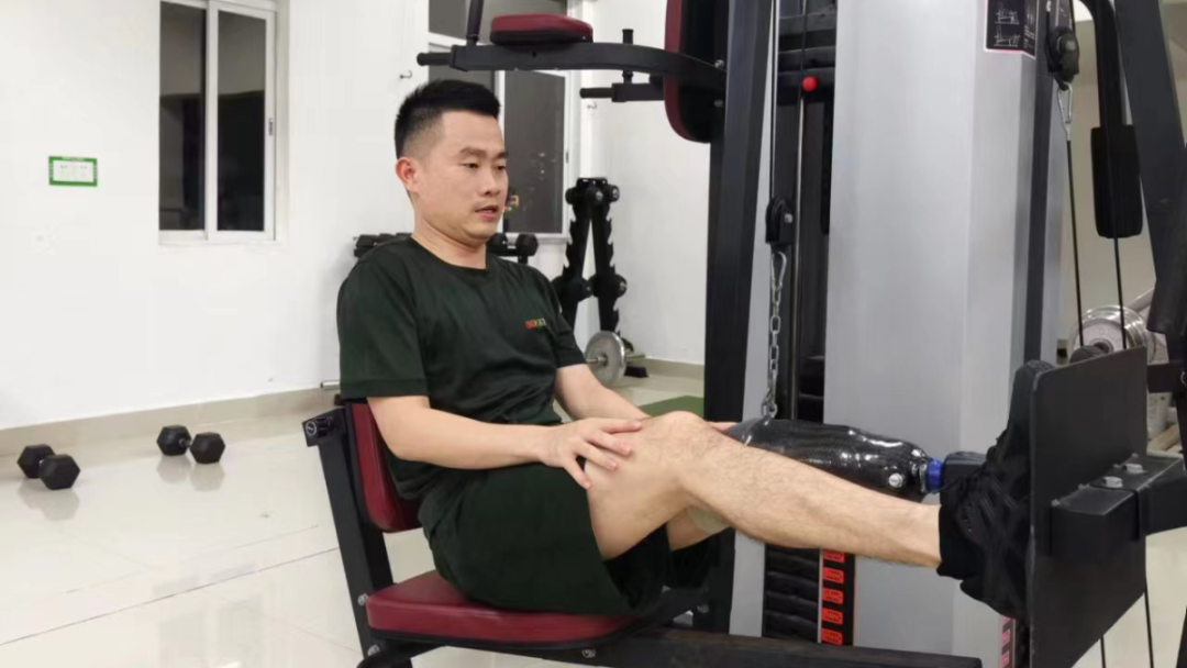 在2023年,林清平為了能早日康復出院,儘快回到工作崗位上,每天除了接受醫院的固定治療外,還自己購買彈力繃帶加大強度,反覆鍛鍊殘肢力量。經常是殘端磨出了鮮血,然後貼着膠布穿戴假肢繼續磨,日復一日,經過一個多月的適應訓練終於穿上了訓練假肢。