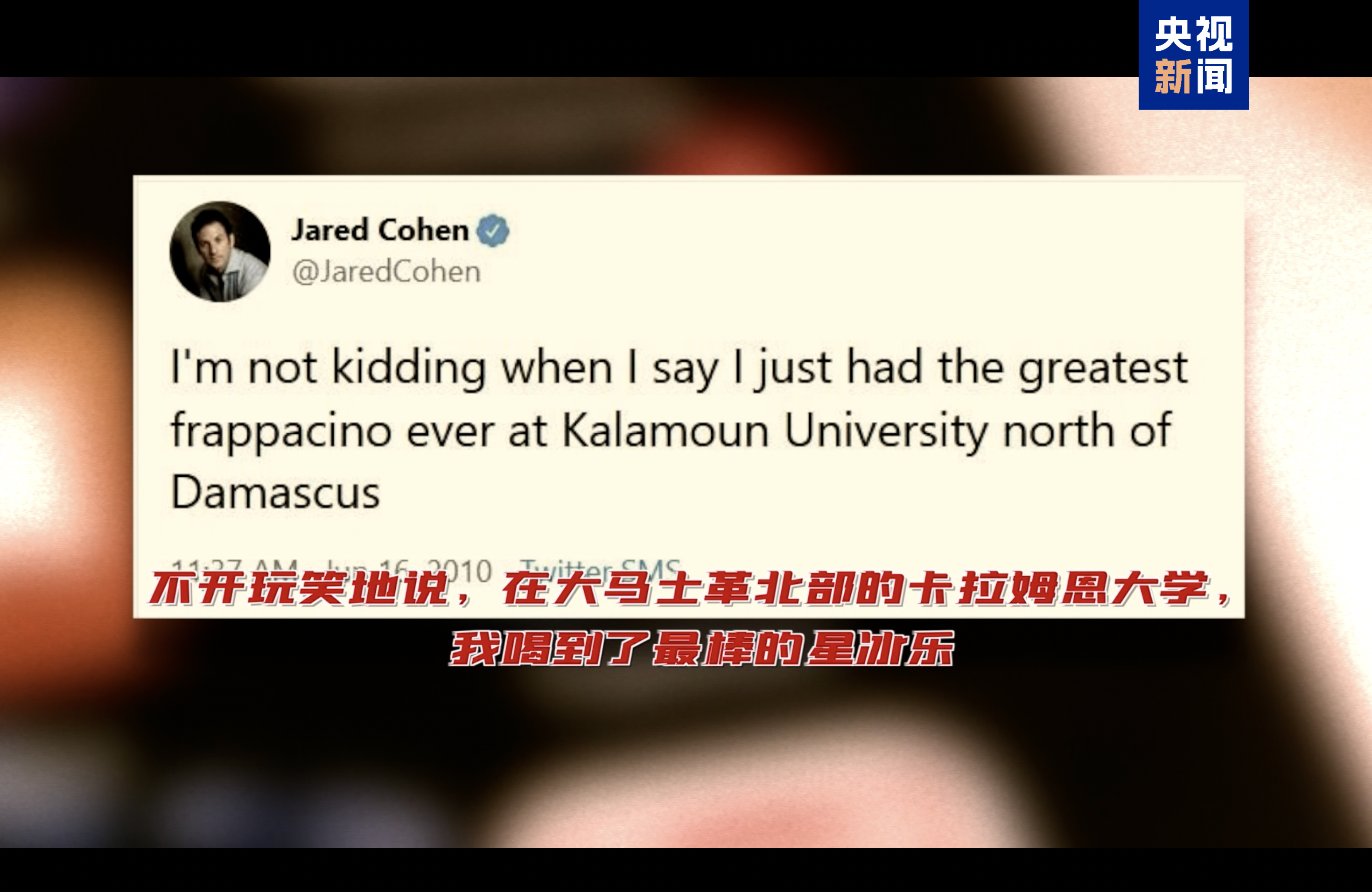 對於此行,他們顯得非常滿意。賈裏德·科恩像遊客一樣發推特稱:“不開玩笑地説,在大馬士革北部的卡拉姆恩大學,我喝到了最棒的星冰樂。”