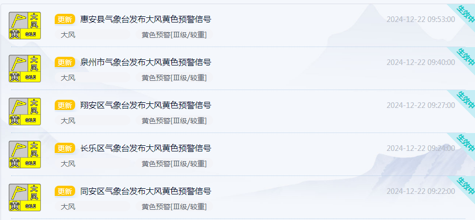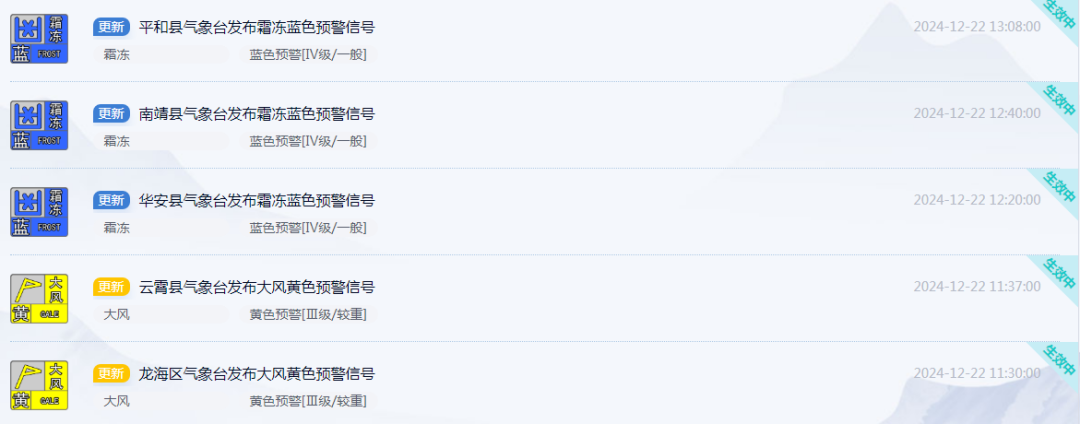 福建多地發佈大風預警、霜凍預警