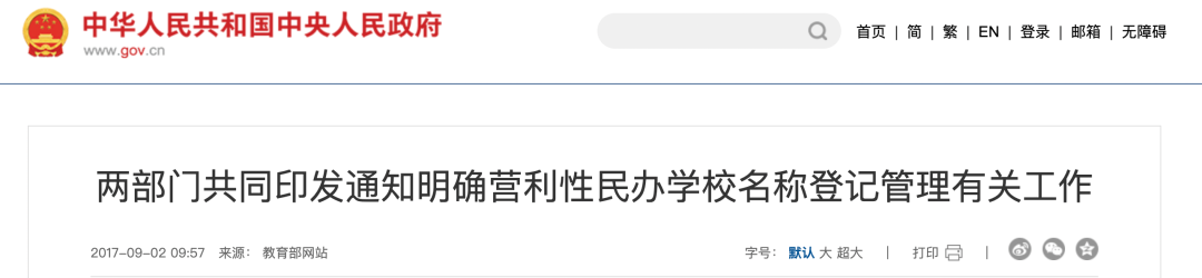 早在2017年,國家工商總局、教育部聯合印發了《關於營利性民辦學校名稱登記管理有關工作的通知》,對營利性民辦學校的命名規則和名稱核准流程進行規範。