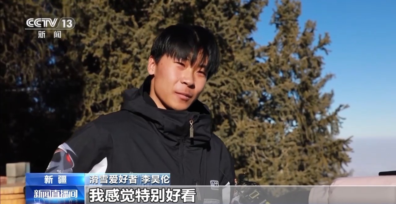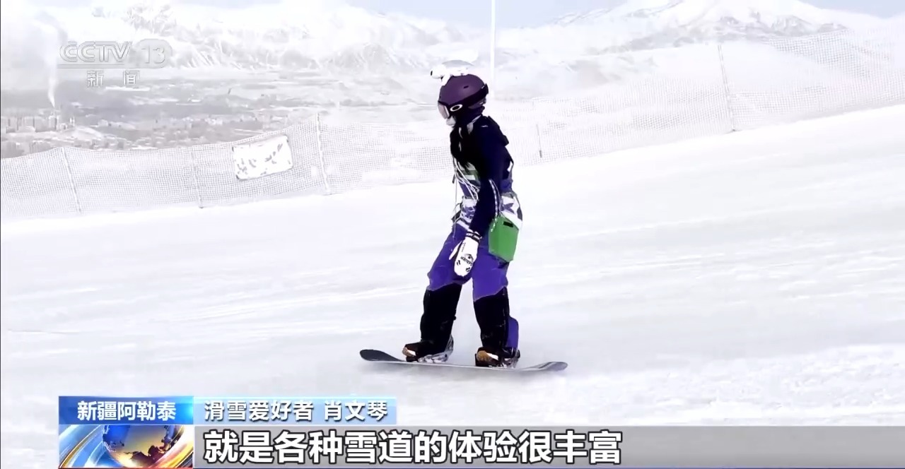 *滑雪愛好者 肖文琴:*阿勒泰這邊的雪非常棒,在國內來説雪道很完善,各種雪道的體驗很豐富,雪域面積也很大,雪質也很好。