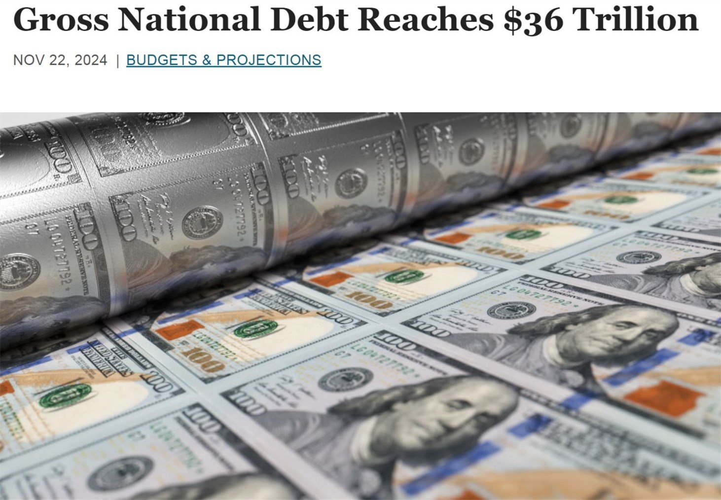 根據美國財政部2024年11月下旬公佈的數據,美國聯邦政府債務規模已達到36萬億美元,遠超當前美國31.4萬億美元的債務上限限額。若美國聯邦政府不能在拜登於2023年6月簽署的法案基礎上再次延長債務上限生效時間或提高債務上限,美國政府將不可避免地陷入債務違約。