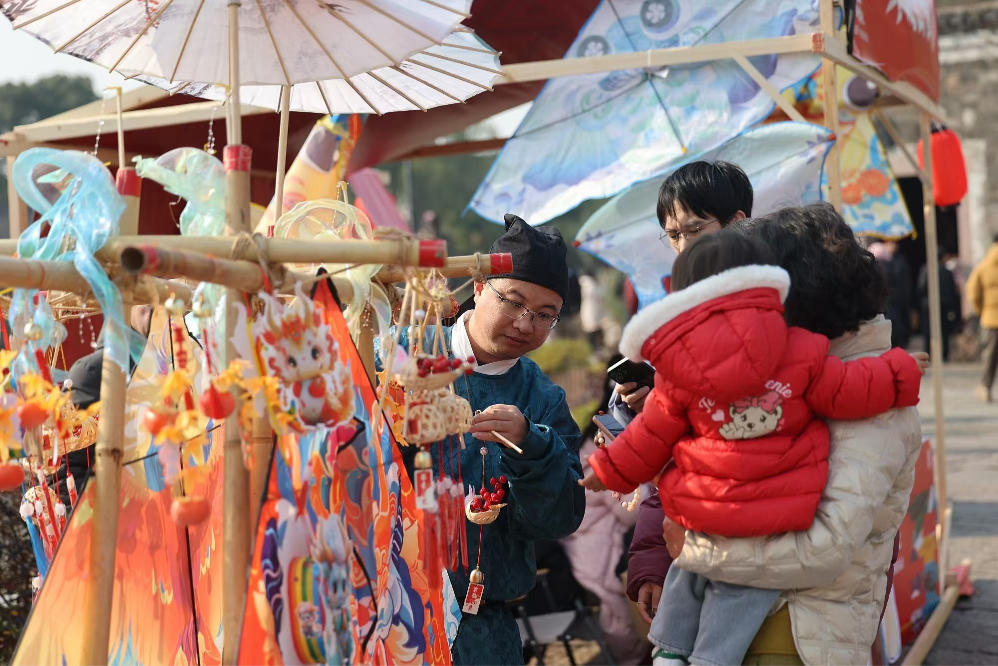 “我是冬至文化系列活動的‘常客’了,每年來都會被驚豔到。今年不僅有民俗活動、快閃演出,還能跟着主播一起邊走邊逛邊玩,可以説是有得食、有得逛、也有得耍!”當地居民沈愛珠一家在景區內玩得不亦樂乎,手上更是提滿了品類豐富的年貨。