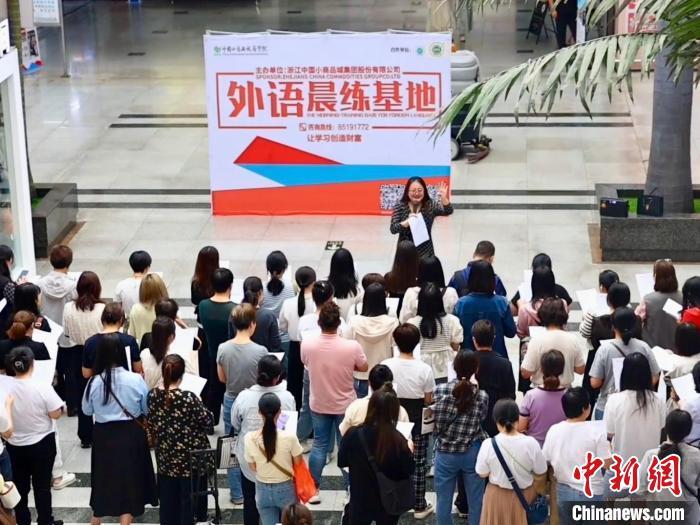 每天早上8:40-9:20,趕在大量顧客到來之前,在義烏國際商貿城的各個區塊都可以看到上百位集體晨讀、學習英語的人。其中大部分是市場內的老闆娘,很多都經營着上千萬年外貿訂單的商鋪。