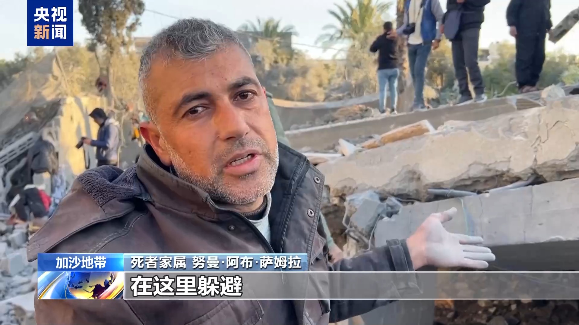 *死者家屬 努曼·阿布·薩姆拉:*襲擊發生時我們和其他人一樣在這裏躲避。天花板倒塌在我們身上,我覺得那像是炸藥桶而不是導彈。孩子們還被埋在廢墟下,我們正在找他們,他們五個人一起睡在客廳裏。
